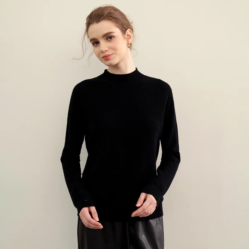 ChiClick | Elegant Pure Cashmere Semi High Neck Pullover