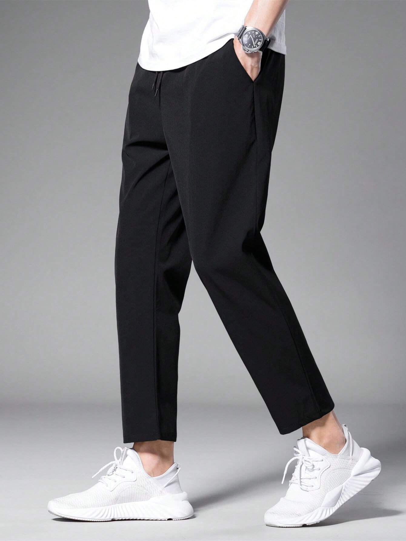 The silhouette is defined by a contemporary tapered fit that streamlines the leg, finishing at a stylish cropped length—the perfect canvas for showcasing your favorite sneakers or loafers. The easy-to-wear drawstring waist provides a customizable fit and a modern, relaxed aesthetic. As the ultimate pair of men's trousers for navigating the modern world, they are an indispensable staple for any smart-casual look. This is not just a pair of pants; it is an investment in effortless, contemporary style.