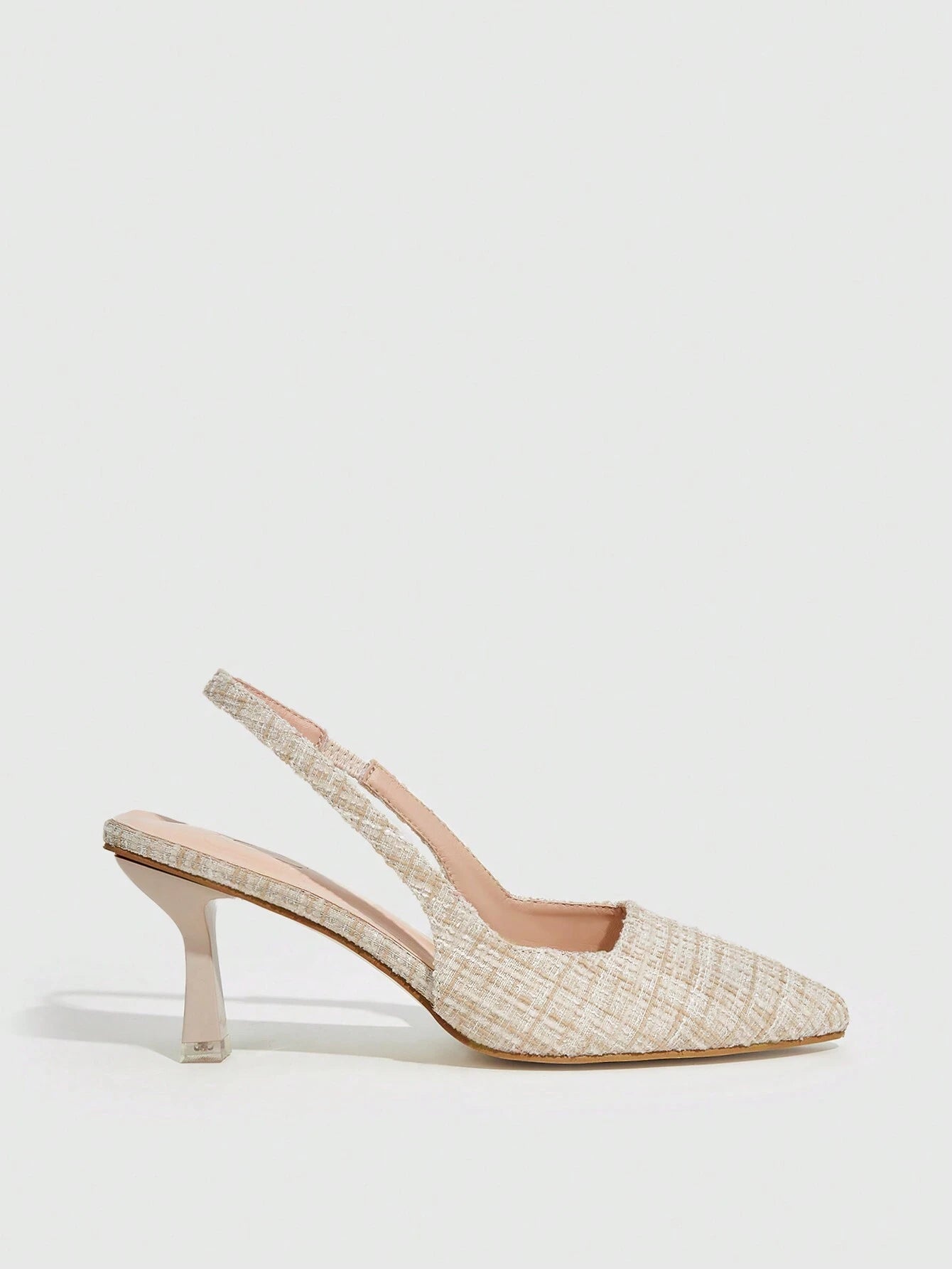 Step into a world of refined sophistication with the ChiClick Tweed Pointed Toe Slingback Pumps, a masterful blend of timeless texture and contemporary design. These exquisite heels are crafted from a beautifully woven tweed, offering a nod to classic heritage and sartorial grace. The neutral, cream-toned fabric is versatile yet distinctive, making it a perfect staple for the modern woman's wardrobe.